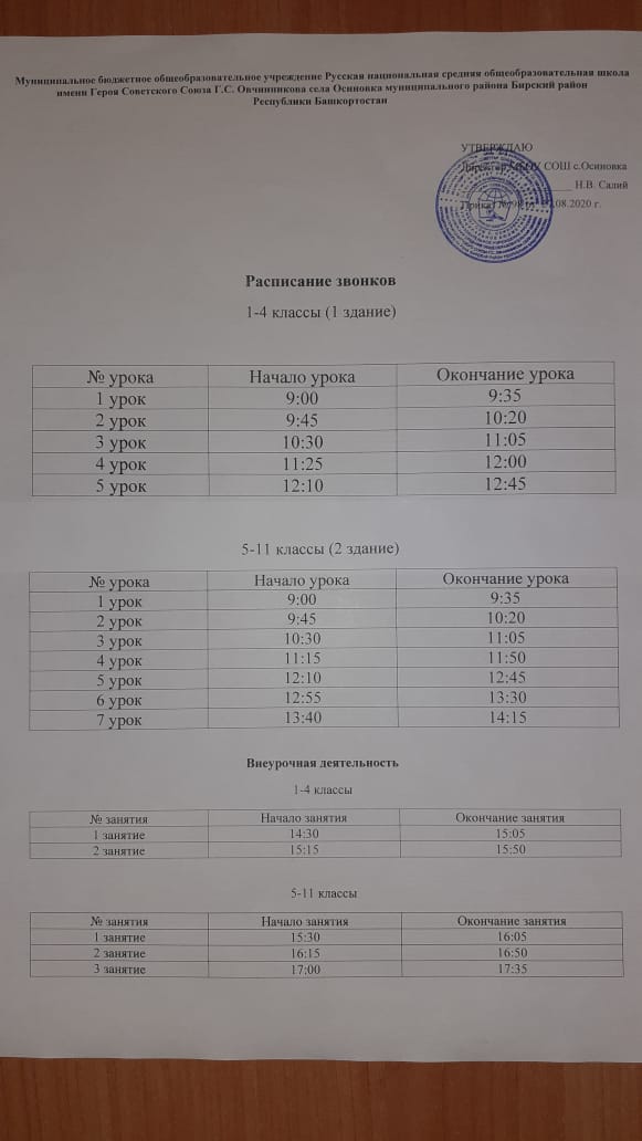 Расписание внеурочной деятельности на 2020-2021 учебный год